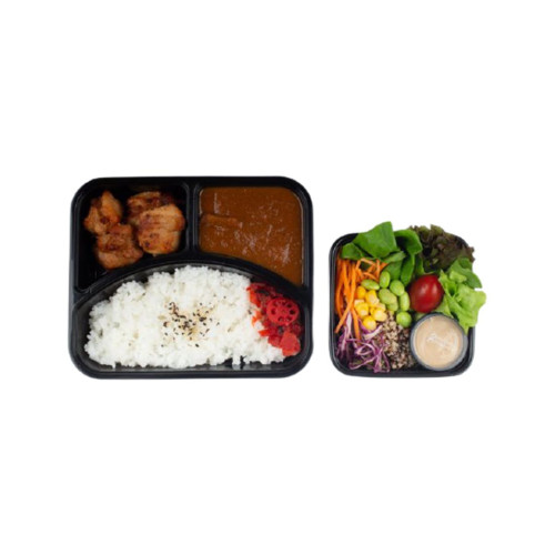 Ingredients : Japanese Steamed Rice, Curry Sauce (Onion, Potato, Carrot, Chicken stock soup, Seasoning sauce, Sugar, Curry powder, Seasoning, Wheat flour, Salt, Garlic paste), Grilled Chicken, Mixed Vegetable Salad