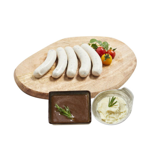 Italian Sausage It's a traditional fennel sausage. Season with roasted cumin. Served with red wine sauce and mashed potatoes.
